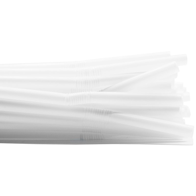 Pack of 250 Flexible Disposable Plastic Straws that are 8.25” long and have a diameter of 0.23” (extends an extra inch when stretched). Each straw has a flexible bend toward the top, allowing you to adjust the angle for comfortable sipping.