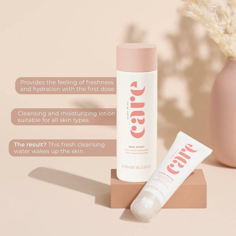 MADE WITH CARE - NEW START, Fresh Micellar Cleansing Water, Daily Facial Cleanser & Makeup Remover, (200ml)