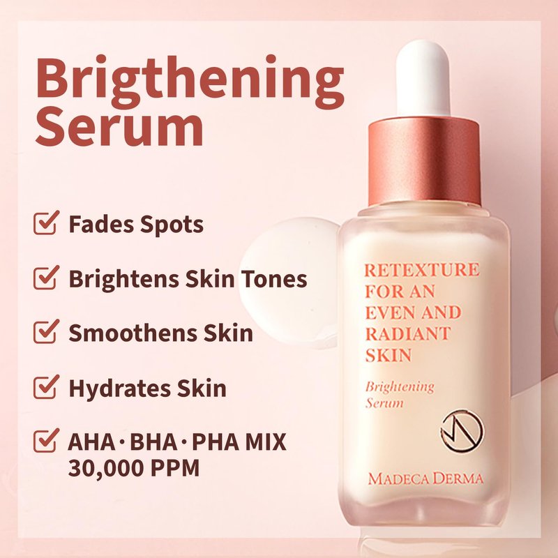 Madeca Derma Brightening Serum - Centella Asiatica, Fades Dark Spots & Brightens Skin Tone In 5 Days - With AHA, BHA, PHA and Vitamin C - Korean Skincare For All Skin Types - 1.69 fl oz