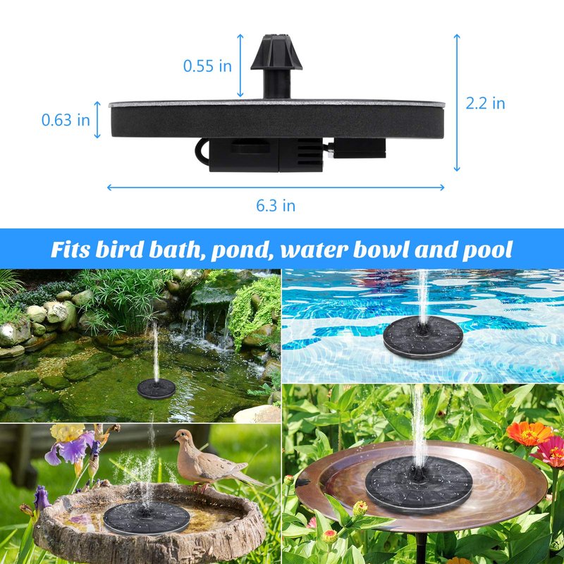 - MUTIPLE APPLICATIONS: Just put in the water, the pump will start to work in 3s once exposed to sufficient sunlight, perfect for bird bath, fish tank, small pond, pool, garden decoration, water circulation for oxygen. (Solar fountains does not store energy, may not work on cloudy days, please make sure the product is used in direct sunlight, and it is recommended to use it in clean water, which will prolong the life of the product).