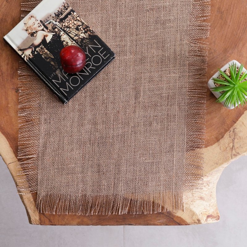 Madhu International Jute Table Runner Burlap Lace 13X60, Reversible Handwoven Rug for Dining, Kitchen, Wedding, and Living Room Décor, Sustainable and Eco-Friendly Farmhouse Style