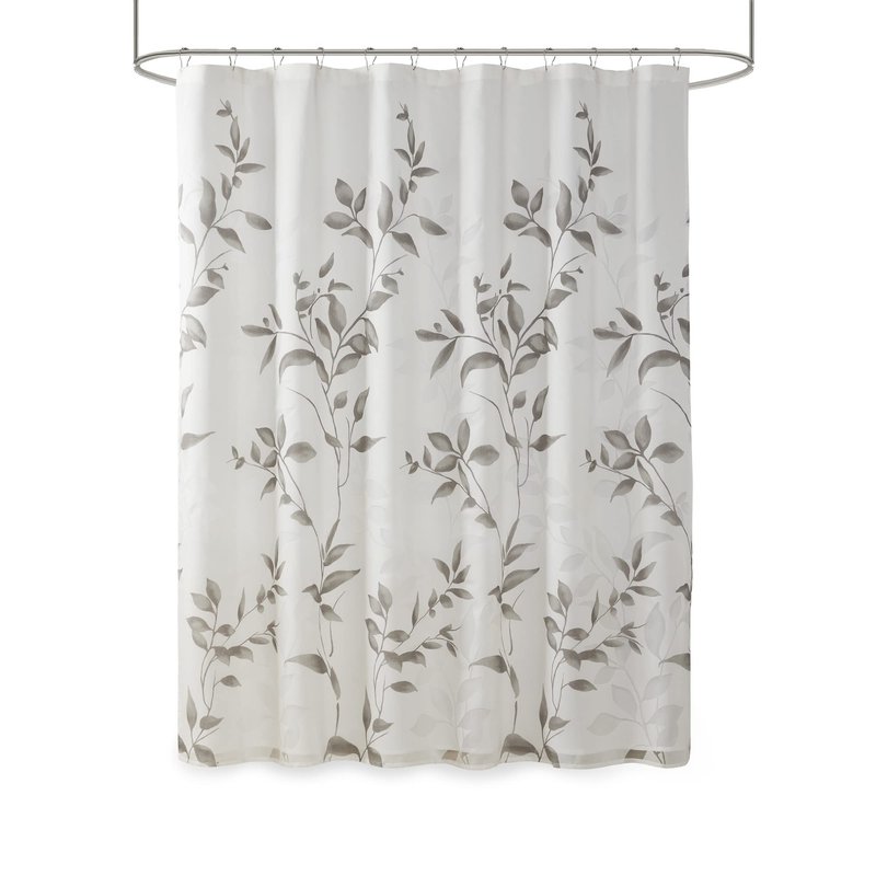 Madison Park Cecily Botanical Modern Shower Curtain, Contemporary Design Water Repellent Shower Curtains for Bathroom, 72 X 72, Grey