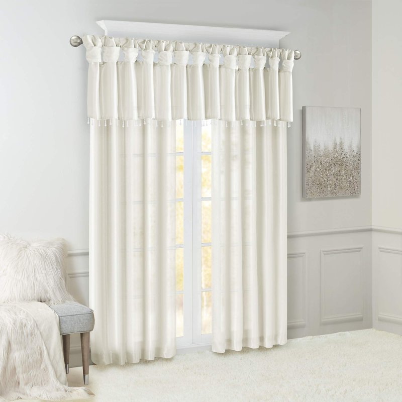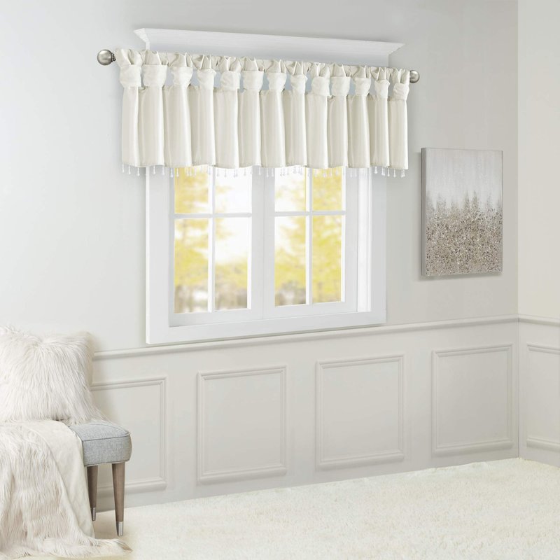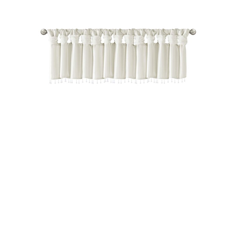 Madison Park Emilia Faux Silk Valances for Windows with Beads, Elegant window valance, 50"W X 26"L, White