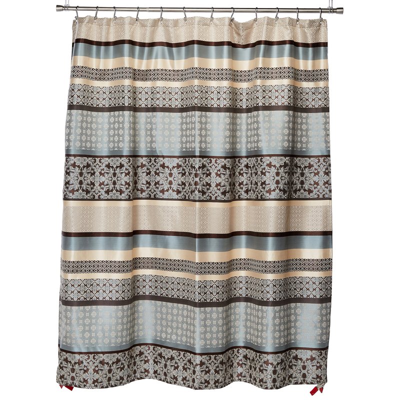 - tan ivory brown teal patterned fabrics long size bath drapes