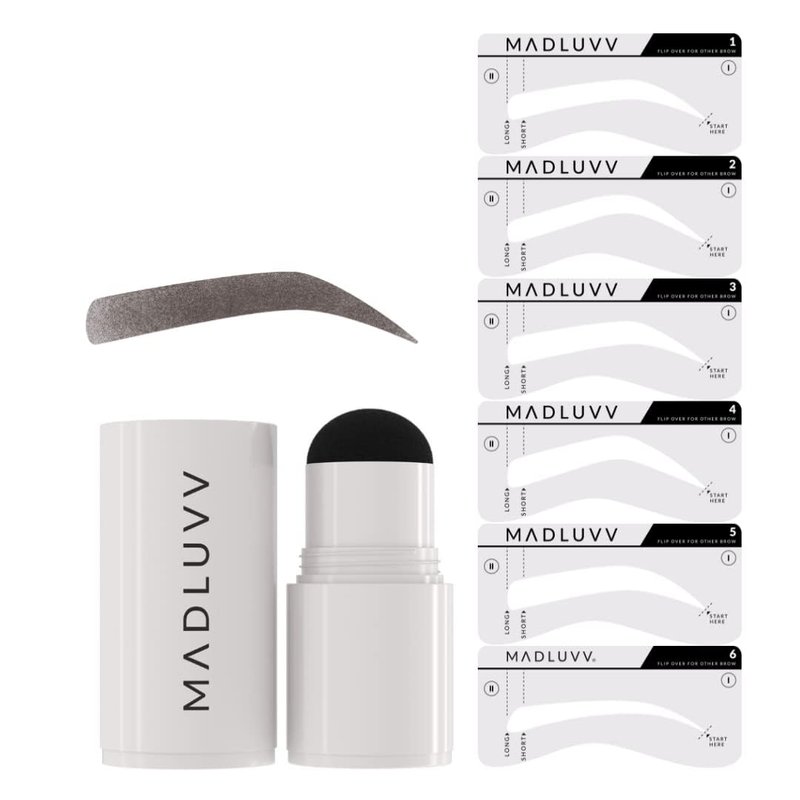 The Madluvv Brow Stamp is a full-pigment, water and sweat resistant eyebrow pomade formula that helps fill in brows PERFECTLY every time! This blendable, long lasting formula comes in 7 shades and goes on smoothly to skin and hair leaving a matte finish. The brow stamp comes with 6 stencil shapes to ensure you can have the PERFECT BROW!