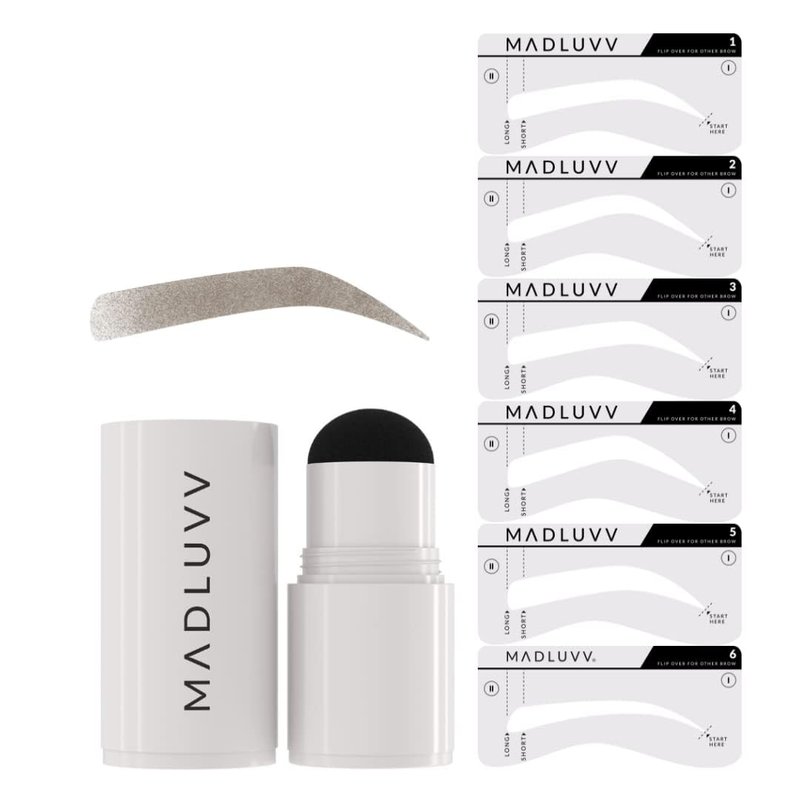 The Madluvv Brow Stamp is a full-pigment, water and sweat resistant eyebrow pomade formula that helps fill in brows PERFECTLY every time! This blendable, long lasting formula comes in 7 shades and goes on smoothly to skin and hair leaving a matte finish. The brow stamp comes with 6 stencil shapes to ensure you can have the PERFECT BROW!
