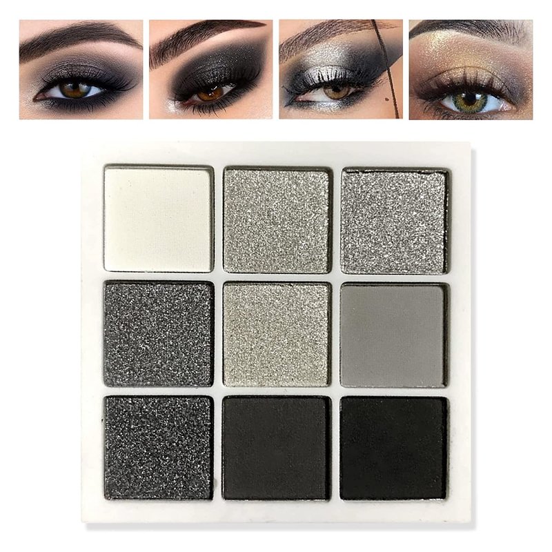 MAEPEOR Black Grey Eyeshadow Palette 9 Colors Cool Toned Matte Glitter Eyeshadow Palette Longlasting Waterproof Smoky Eye Shadow for Girls and Women (Set 1, Black Grey)