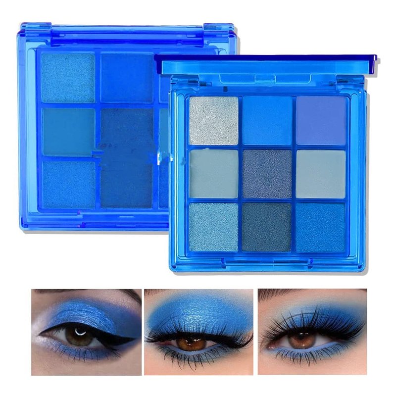 MAEPEOR Black Grey Smokey Eyeshadow Palette 9 Colors Cool Toned Matte Glitter Eyeshadow Palette Longlasting Waterproof Smoky Eye Shadow for Girls and Women (Set 3, Blue Silver)