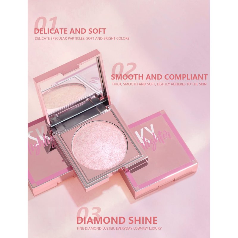 - ✨【Perfect Natural Shimmer】This face highlighter make-up palette shimmer powder have a good color rendering, which instantly bloom charming light and give you a sparkly face glitter highlighter makeup effec.