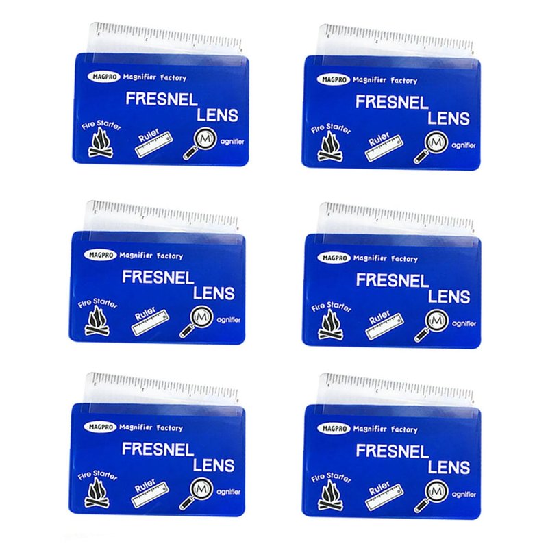 MagDepo 6 Pack Credit Card Size Magnifier Ruler Fire Starter Magnifying Glass Wallet Pocket Magnifier for Reading Small Print, Map, and Book-Blue