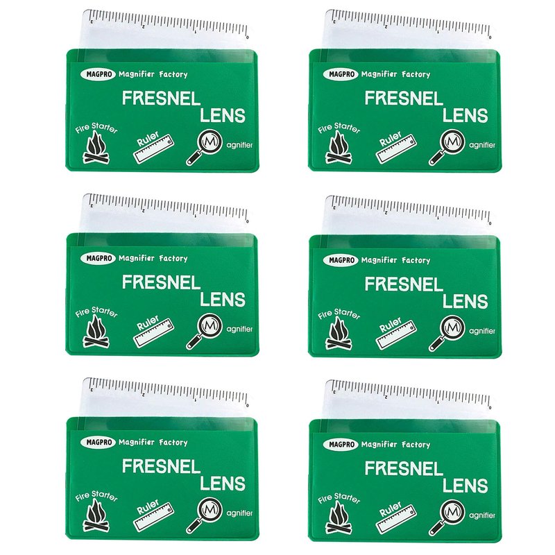 Magpro 6 Pack Credit Card Size Pocket Magnifier Ruler Fresnel Lens Fire Starter Compact Plastic Magnifying Glass-Brown