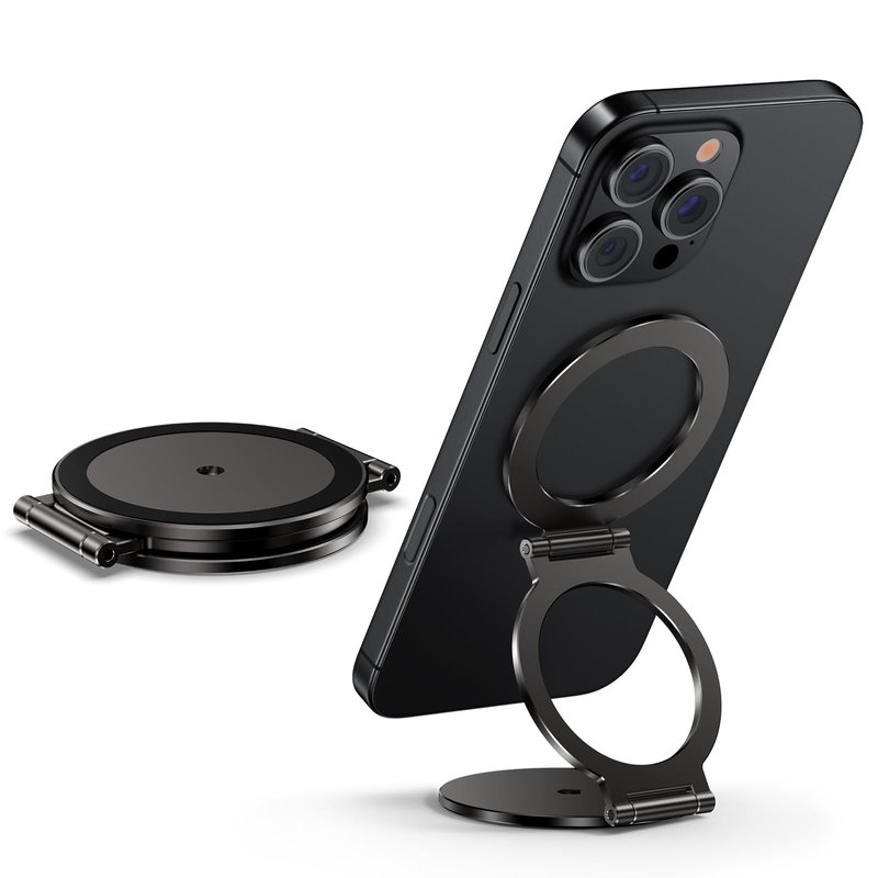 - Double Magnetic Ring Phone Mount: Dual magnetic phone holder that provides double-sided magnetism for superior stability and security. Designed with strong N52 magnets that can hold up to 3.3 lbs (53 oz) on both side. The side with 1/4" Screw Hole can attach to any iron surface, the other side is specially designed for MagSafe. The magnetic phone stand is made of zinc alloy material