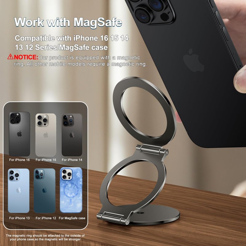 - Work for All Phones: Specially designed for iPhone 16/15/14/13/12 pro max series phones. Compatible with MagSafe cases. This magnetic phone mount fits for iPhone 16/15/14/13/12 pro max series directly. Our product is equipped with a magnetic ring. All other mobile phone models require a magnetic ring