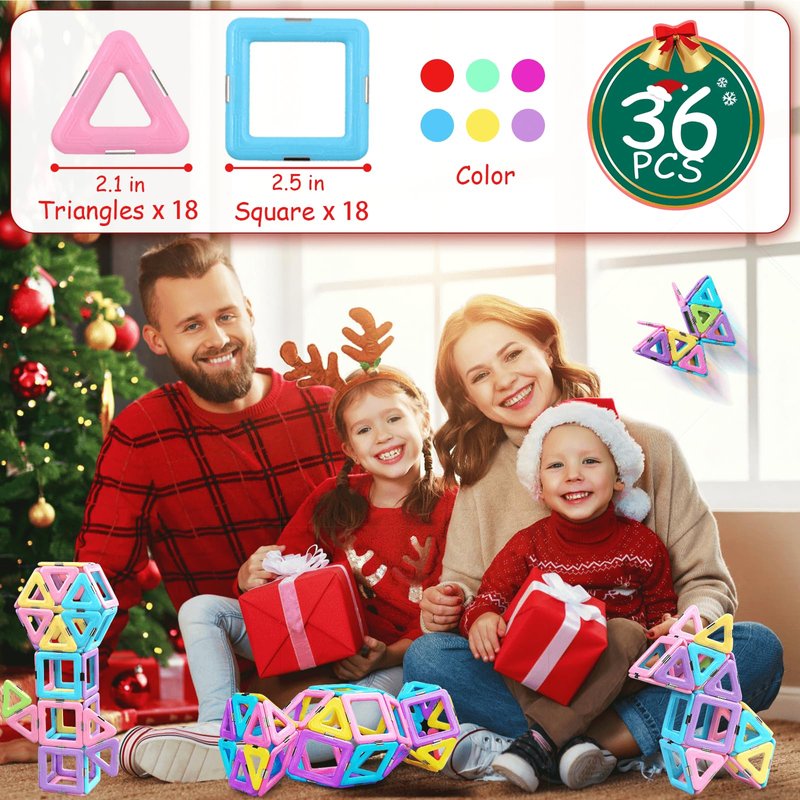 - 【Perfect Educational Toy for 3 year old】Our Magnetic building set toys for 3 4 5 6 7 8 year old boys girls come with 36 Pieces set includes 18 Triangles, 18 Squares. An idea booklet included for your easy reference to build various kinds of Models ,kits to meet most of learning and playing needs,help your kids learn shapes,colors,numbers and many motor skills.