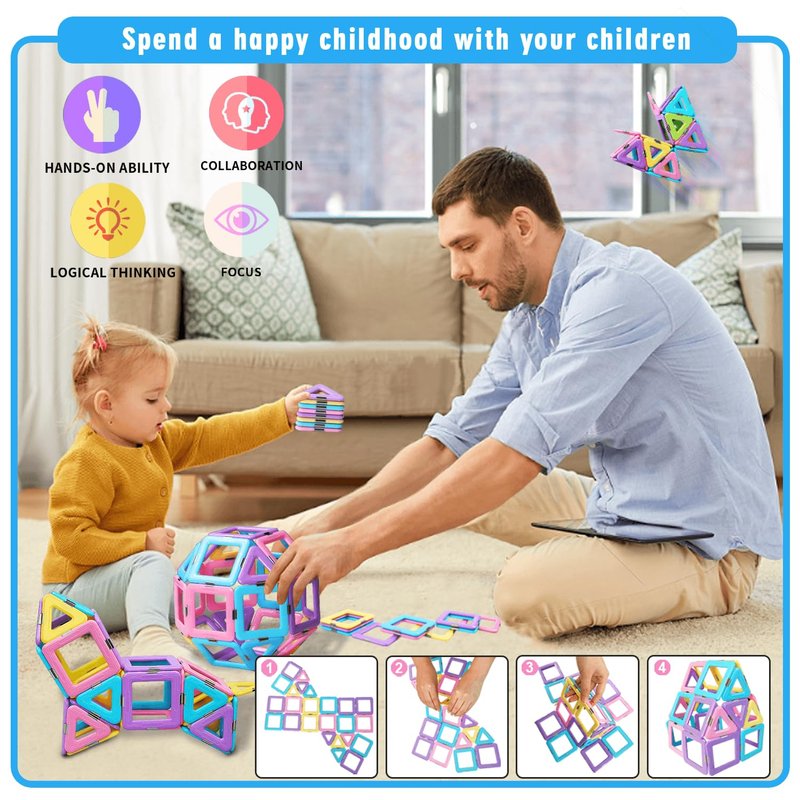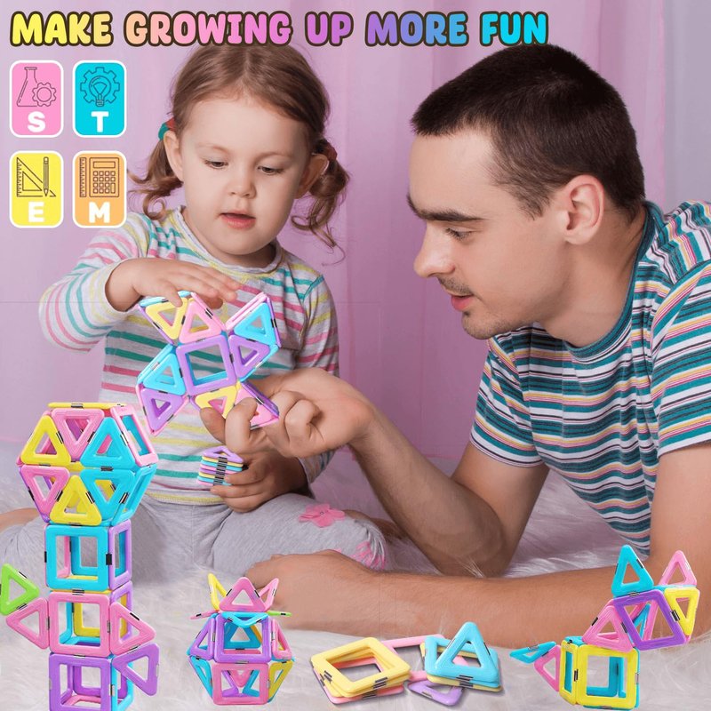 - 【Keep Kids Away from Screen& Home Entertainment】 This magnetic building blocks set is the perfect toy for kids age 3 4 5 6 year old boys girls home entertainment and Parent-kids-bonding! Our magnetic building blocks set has variety of shapes to fully stimulate 3 4 5 6 7 8 year old boys and girls' imagination and hands-on ability, help children away from the screen. Let them enjoy the boundless fun of this magnetic tiles toy!
