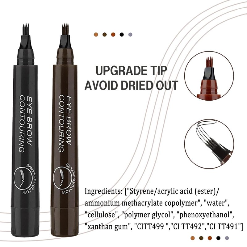 - 【3D Waterproof Eyebrow Pencil】Unleash the power of our innovative waterproof eyebrow pencil, equipped with a unique four-prong tip design. Easily create defined, lifelike brows with a blend of highly saturated liquid pigments and enjoy a long-lasting, naturally enhanced look.