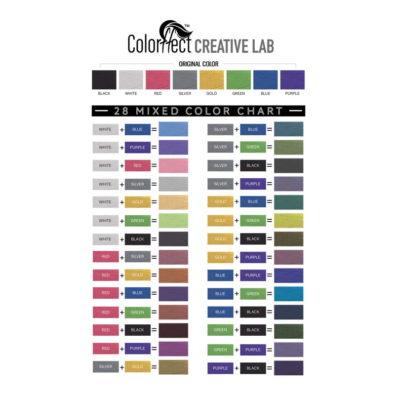 Collorffect is a temporary hair color solution for the individual that does not want to commit to traditional coloring methods. This product uses the best ingredients that result in great color without damaging your hair. The color can be removed with a single wash to go back to your natural color. Use a single color or mix colors to find your perfect color with Colorffect! Directions: Can be used on wet or dry hair , but best results when hair is damp. Rub desired amount of Colorffect on palms and fingers and glide through desired area to apply. Repeat until complete. Let dry naturally or use dryer to set color. This product will not transfer until water is added. Remove with single wash.