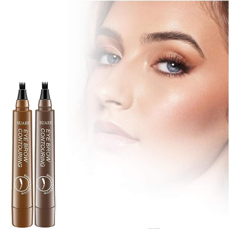 Magic Eyebrow Pencil, Microblading Eyebrow Pencil Contouring Pen, 4 Tipped Precise Brow Pen, Fine Stroke Microblading Eyebrow Pencil Natural (Dark Brown*2)