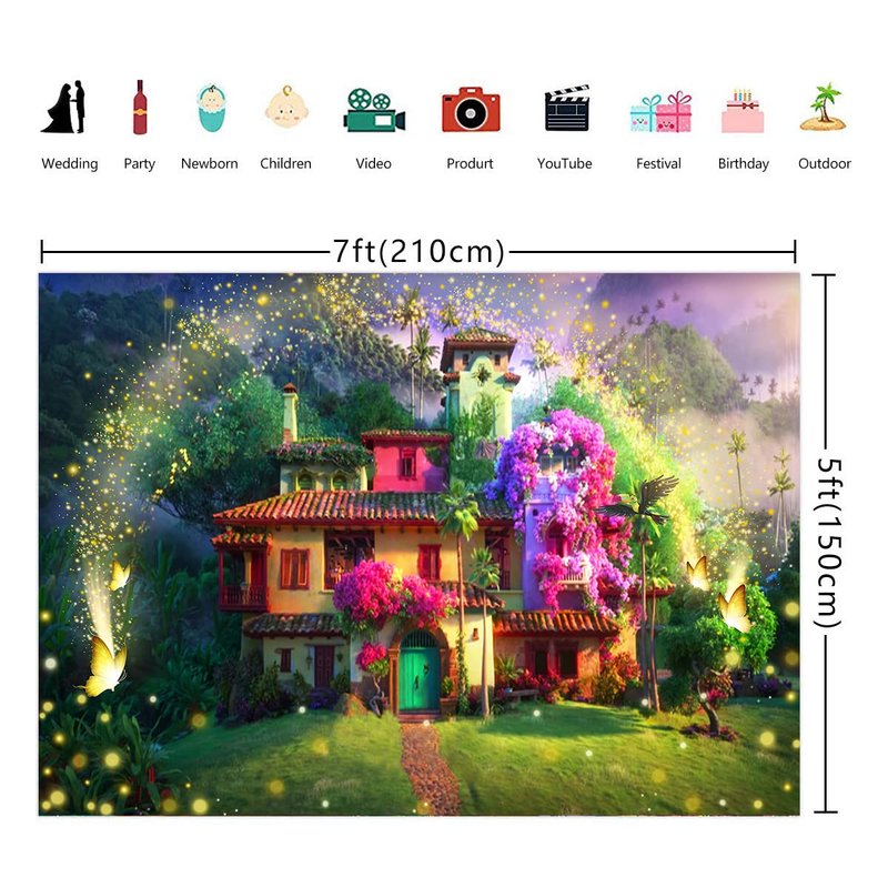 Magic Flowers House Backdrop Fairy Buttfly Woodland Background for Birthday Party Supplies Kids Movie Scene for Girls Madrigal Family Happy Birthday Background Decorations (7X5FT)