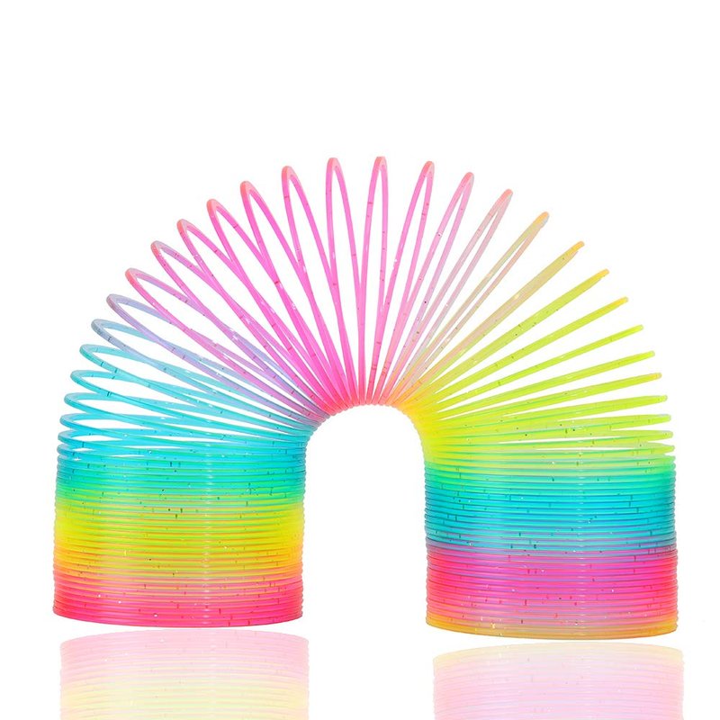 Colorful like Rainbow,Plastic in rainbow colors is great fun.Stretch out this large spring and watch it will snap right back.They also make cool sounds when you move them.