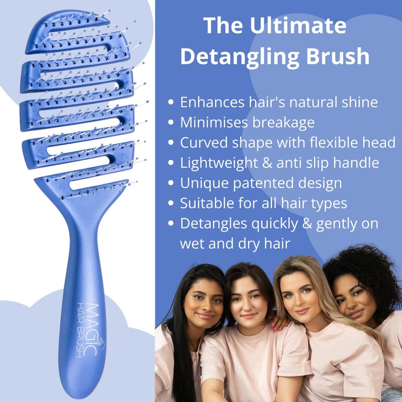 Magic Hair Brush Blue | Professional Flexible Vented Hair Brush For Detangling | Blue Detangler Brush And Blue Traveling Case Use As A Blowout Brush Styling Brush Or Wet/Dry Brush