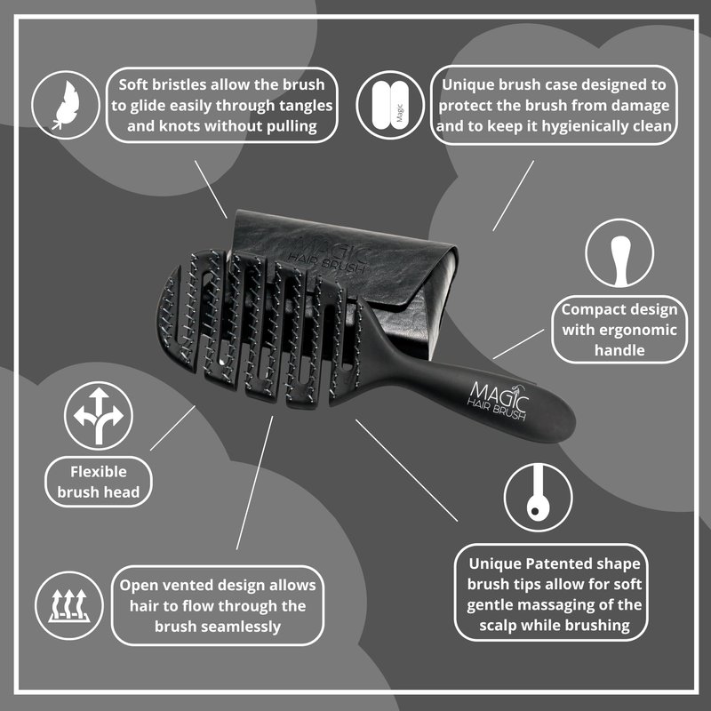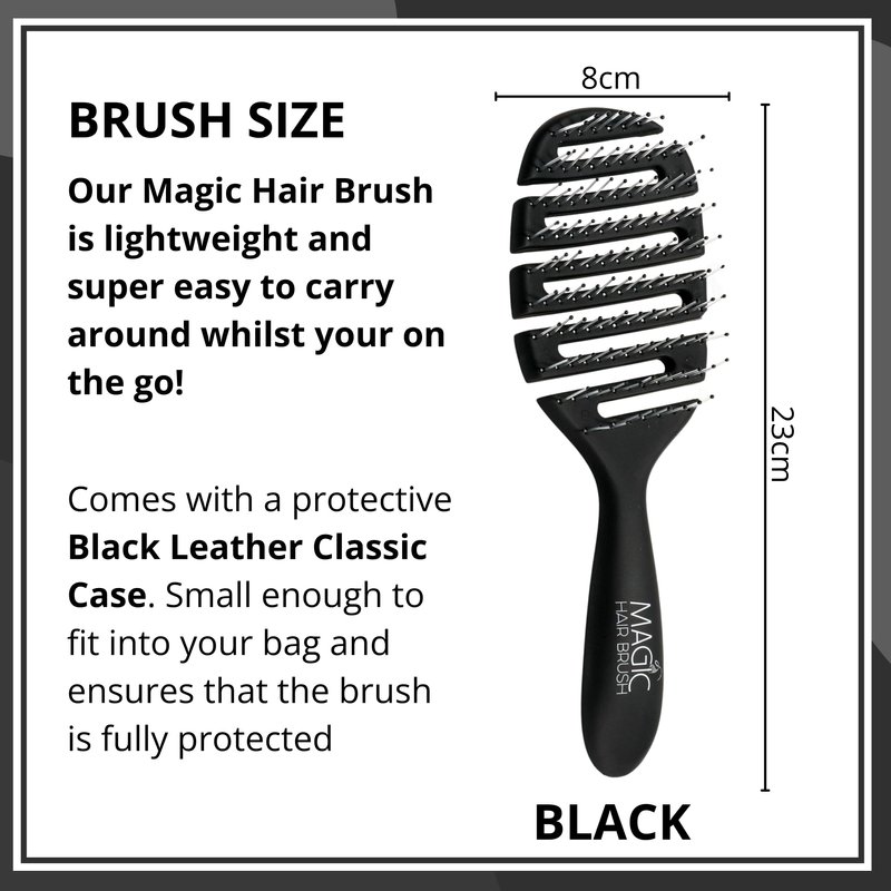 Magic Hair Brush Detangler – the difference is magical! This Professional Magic Hair Brush Flexible Vented hair brush is the gentlest and quickest way to detangle your hair. The style and softness of the bristles with the flexible head, allows you to brush effortlessly through the hair without snagging or pulling. We are delighted to bring the new colorful brush range of black, blue and sport green to match the different aesthetics in your life. Easy to distinguish from other Brushes in the same household, gym, office, apartment, dorm, and all the other places you take your hair products. This Hair Brush is designed to quickly detangle your hair with unique soft touch flexibility and stability in mind. We wanted to make a multipurpose hair brush for the different styles of your life. Whether you are straightening, dying, blow drying, curling, or more, we wanted to give you the option for a brush that fits your needs. Our brushes come with a travel case to keep your brush and your hair protected from the outside elements and getting dirty.