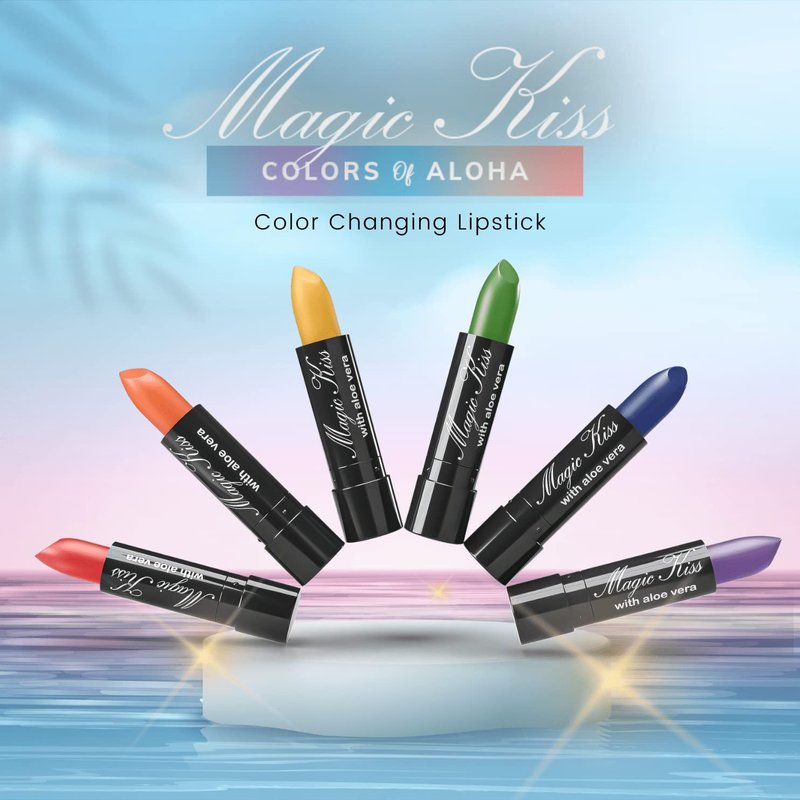 Magic Kiss Lipstick is available in many colors and when applied to your lips will change to a Beautiful shade of Red or Pink depending on your skin temperature, humidity and pH. Magic Kiss Lipstick is waterproof and will not easily rub off after application.