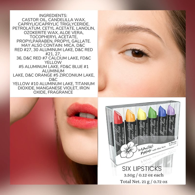 Magic Kiss Lipstick has been a very popular seller for over 30+ years. Helps protect your lips with Aloe Vera and is very Long Lasting.