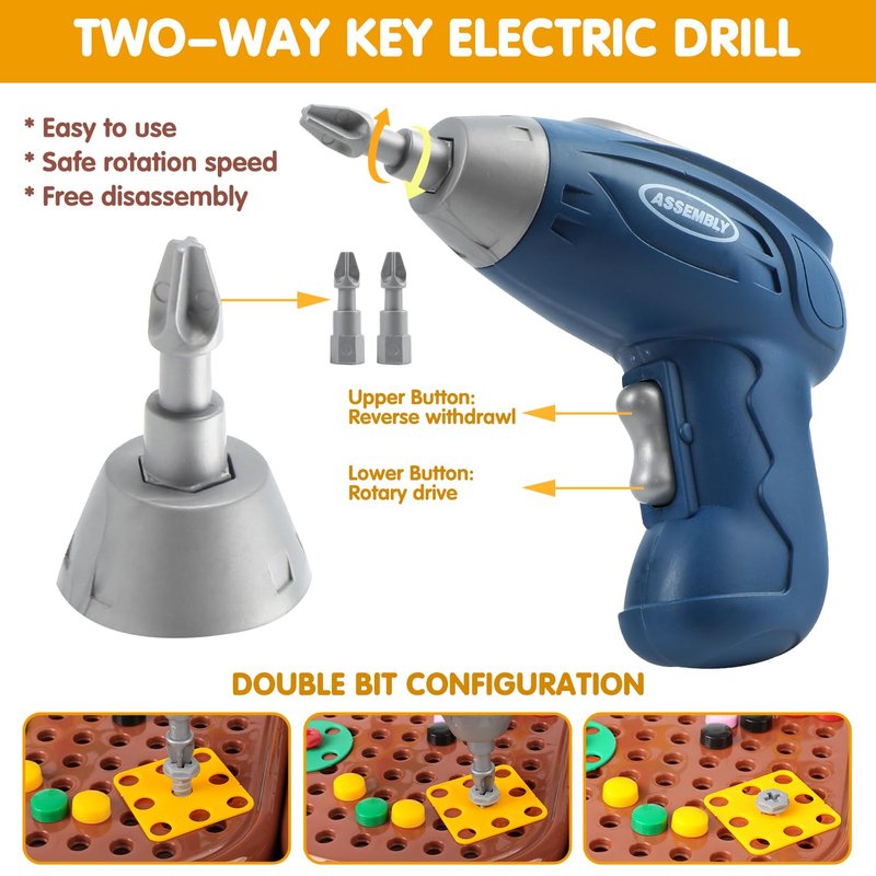 - 【Magic Montessori Play Toolbox】Drill set for kids includes a toy screwdriver, fun wrench and realistic electric drill! Watch as they grow in confidence and learn to fasten, disassemble, and complete rewarding tasks on their own! Drill set for kids 3-12 years