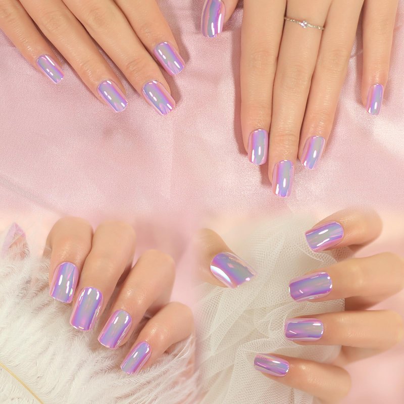 - Chrome Holographic Nails, High-quality salon style, nails are made by Acrylonitrile Butadiene Styrene(ABS), it is environmentally protection, Non-toxic.