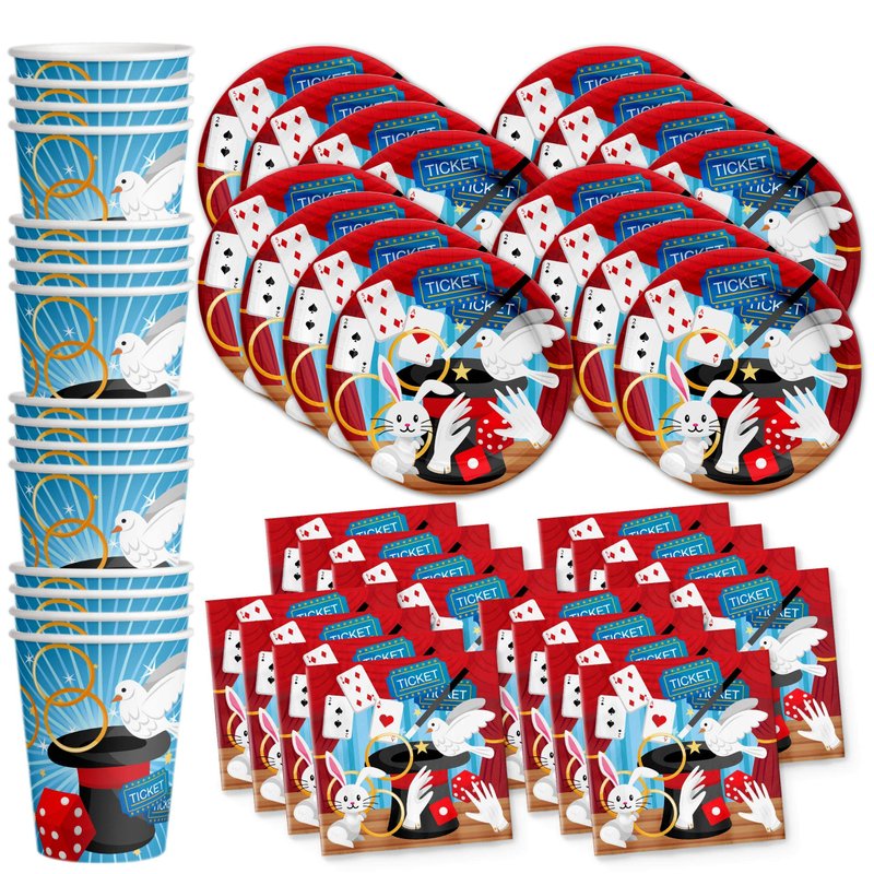 Magic Show Birthday Party Supplies Set Plates Napkins Cups Tableware Kit for 16