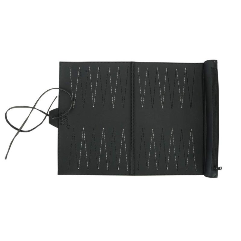 DURABLE AND SOFT LEATHERETTE:The leatherette backgammon set is made of best PU leather, strong and durable.And the backgammon board is soft and lay flat,this travel backgammon set give you a good feeling.The superb stitching makes the leatherette backgammon set the best quality that you're not easy to damage the backgammon board.And the black color combo really make the backgammon board look slick and clean,leave you a good visual enjoy to play backgammon game.