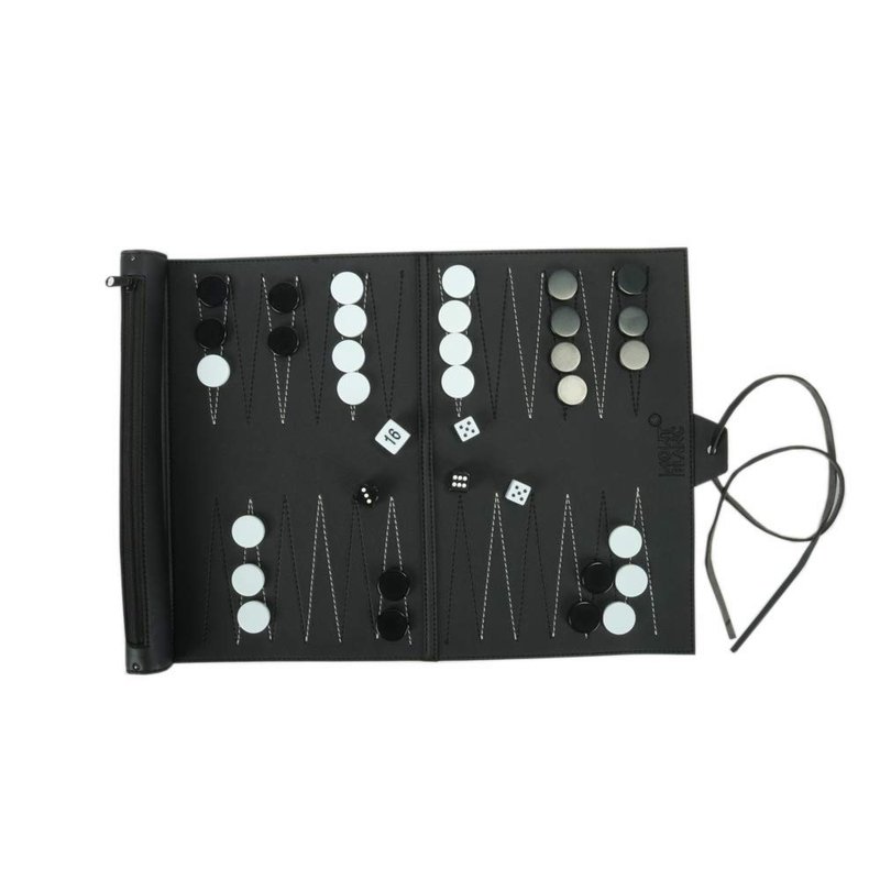 The travel backgammon set also have roll zippered pouch holds all the pieces and dices when players played backgammon game.Excellent design travel backgammon set.