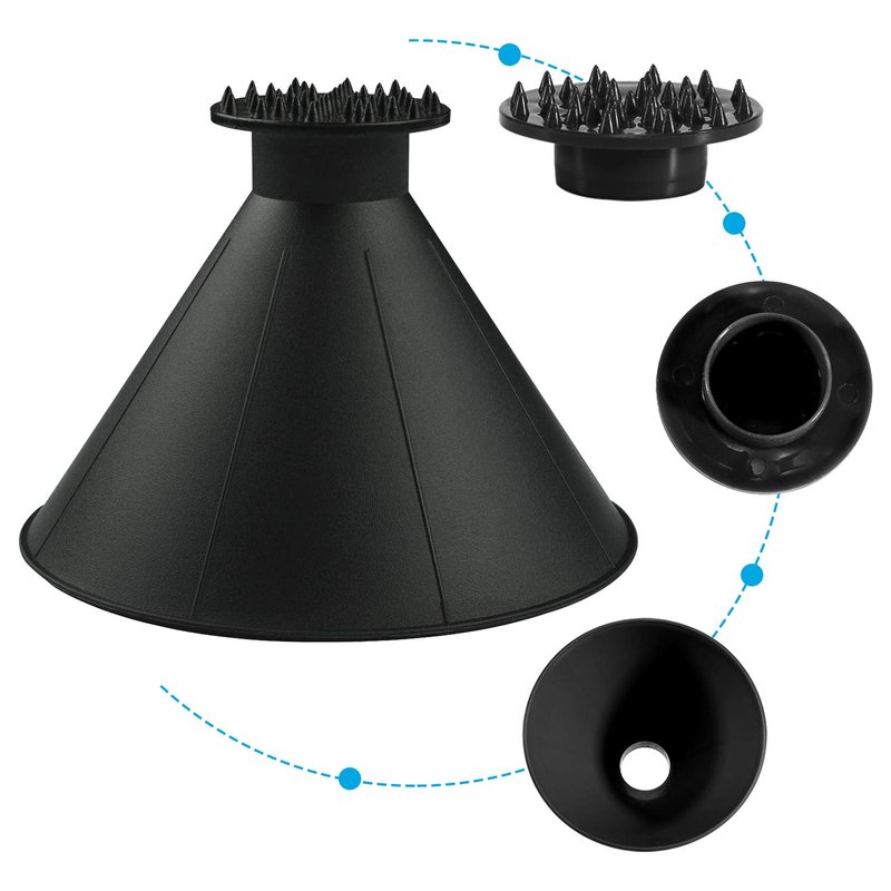- EASY TO CARRY: Cone-Shaped Windshield Ice scraper longest diameter is 5.7 inches, height is 4.5 inches, it doesn't take up a lot of space in the trunk and can be placed in any corner.