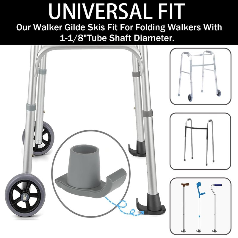 - 【Easy to Install】Our walker Glide Skis can quickly and easily switch out with other accessories without tools. Just spin and press right in. Instead of punching holes in the Walker tennis ball chute.