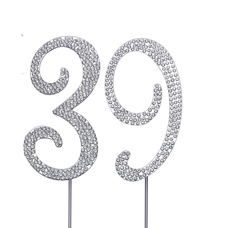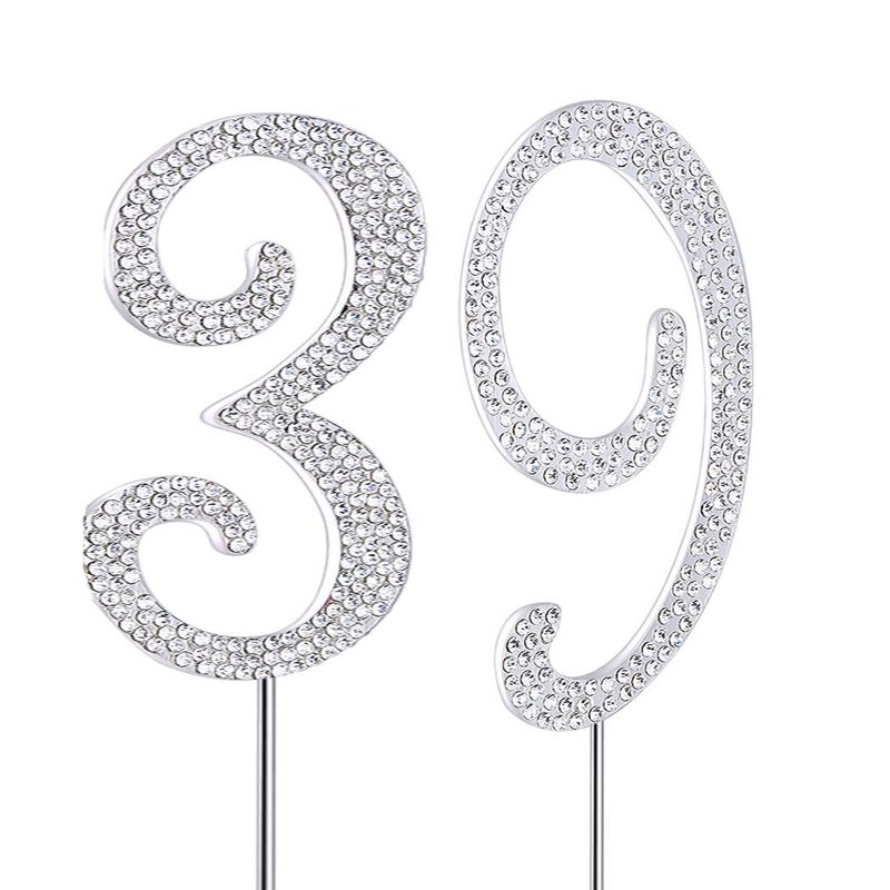 MAGJUCHE Silver 39" Crystal Cake Topper, Number 39 Rhinestones 39th Birthday Cake Topper, Men or Women Birthday or 39th Anniversary Party Decoration Supply