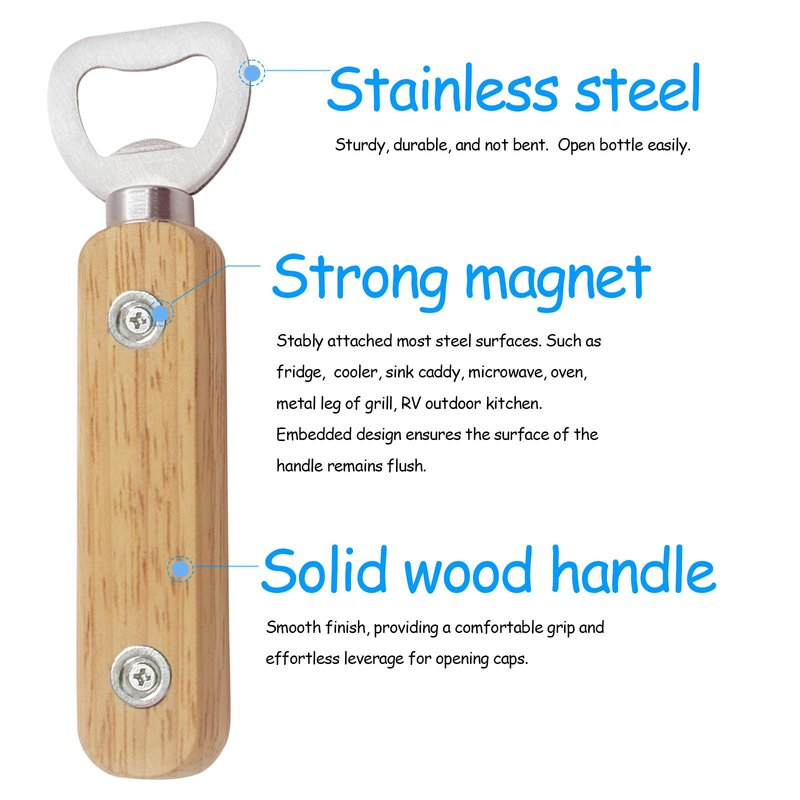 - Easy Storage. This handmade opener features two built-in magnets , allowing it to easily adhere to the fridge or most steel surfaces without slipping. It provides a convenient storage solution that eliminates the worry of misplacing your opener.