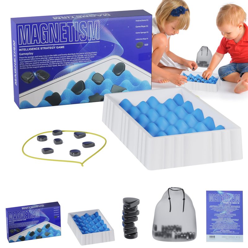 Magnetic Chess is a game that lets you exercise your thinking and logic skills in a fun and challenging way. You can challenge yourself or others, and have fun with your family and friends. It is a great way to bring them closer and spend together. Gameplay: The goal of the game is to put all the magnets in your hand into the sponge concave grid/rope, and do not allow any magnets to connect and attract together, you are the winner.