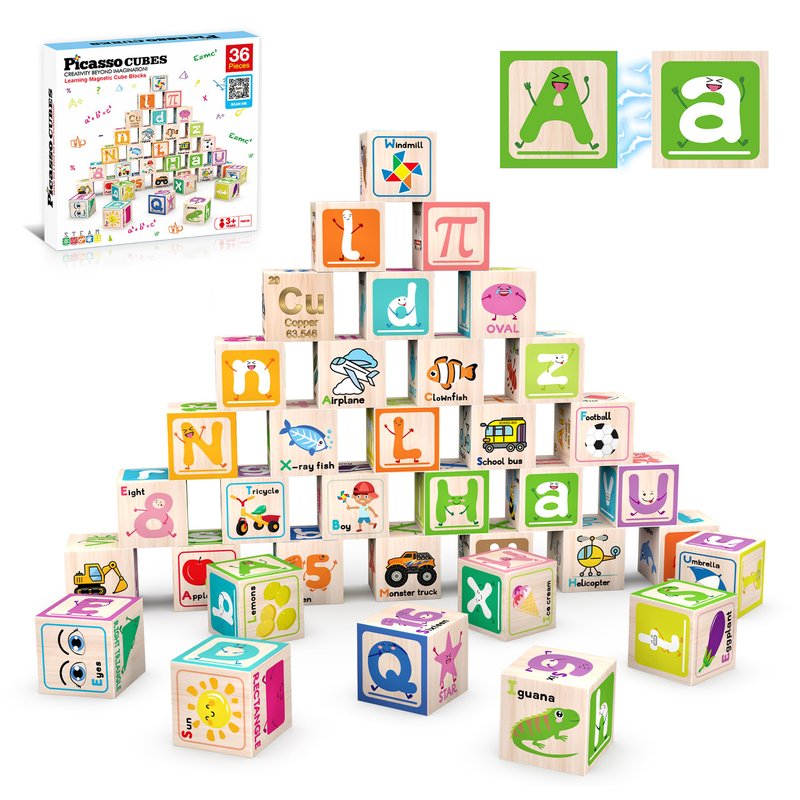 - LEARNING BY PLAYING - SCIENTIFIC & ARTISTIC - PicassoTiles has done it again providing an all-in-one experience enabling kids to play intuitively and learn to be creative, intelligent, technical, and architecturally sound all at the same time. The 36 pieces learning magnetic block set offers early education opportunities by playing. Flip through each side of the colorfully illustrated expression magnet cubes then mix & match to create fun silly combinations of wacky faces