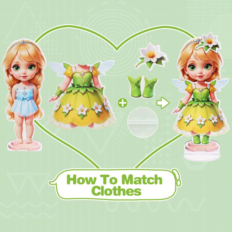 - 👧👗 Paper Doll Product Details - Our magnetic doll dress up kit includes a small paper doll that stands 4.3 inches tall. Each set contains 1 magnetic paper doll, 1 magnetic clothing patch, and an acrylic base stand.