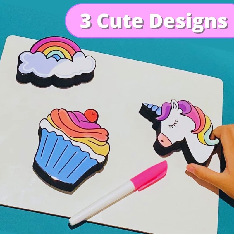 Magnetic Dry Erase Eraser Set for Whiteboard - 3 Pack Cute Design Unicorn, Cupcake and Rainbow - for Kids and Classroom Board Accessories