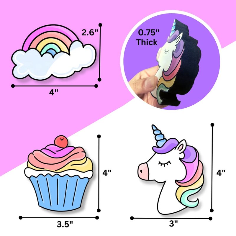 Cute Shaped Unicorn, Cupcake and Rainbow Magnetic Whiteboard Eraser - 3 Pack