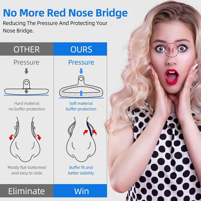 - 💦Air Bag Nose Pads: Made of soft PVC material, non-slip,durable and comfortable, reducing pressure caused by frame and protecting nose bridge.