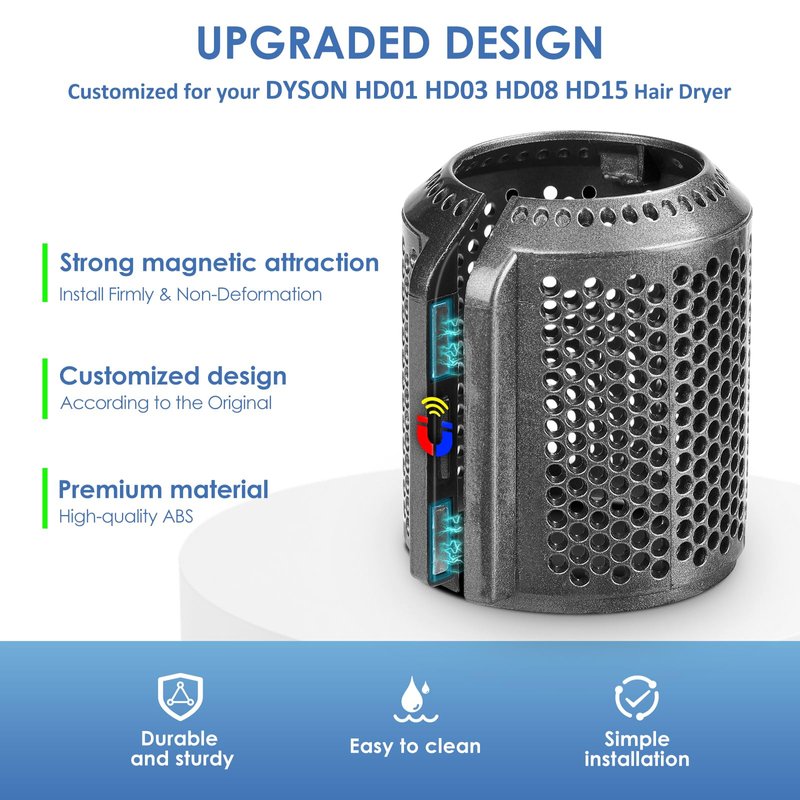 - [Compatible Models] This is the magnetic filter replacement part compatible with Dyson hair dryer HD01 HD03 HD08 HD15 models, easy to remove and install. NOT compatible with Dyson HD02 and Airwrap.