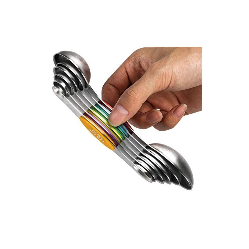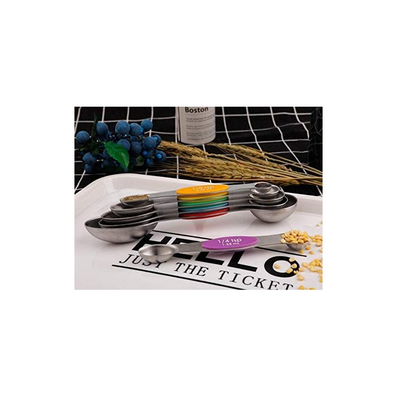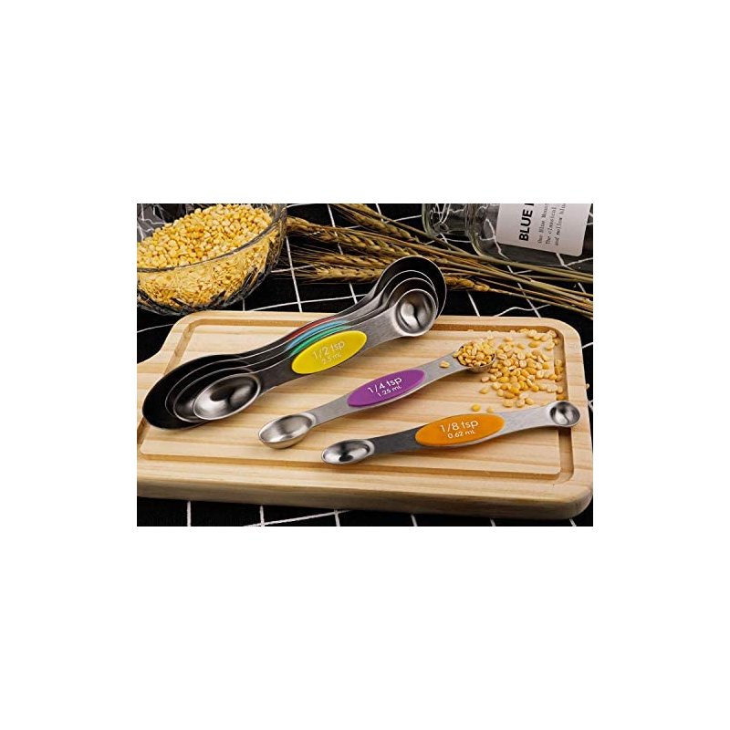 - 【ERSATILE DESIGN 】These magnetic stainless measuring spoons are great for measuring spice, sugar, salt, oil, coffee, wheat etc. Make your cooking and baking easier and more fun.