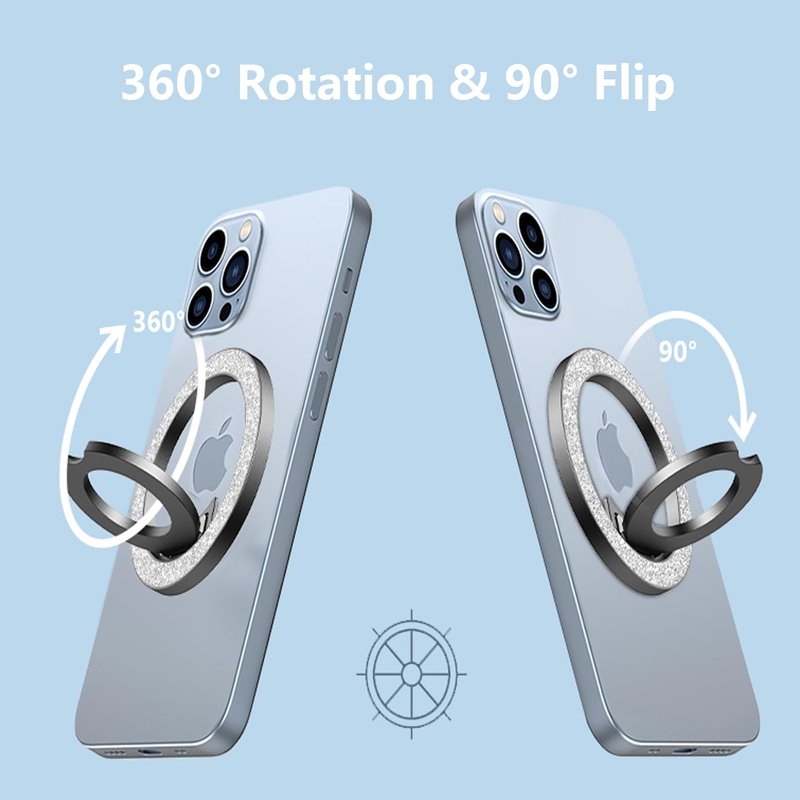 - 【360° Rotation & 90° Flip】Multi-functions: The magnetic finger phone ring stand holder can be flip it up to 90 °and rotation 360° for a comfortable grip or different viewing positions when placed on a tabletop. As a phone grip ring and holder, easy to operate the phone with one hand, hold the phone firmly and reduce the risk of accidentally dropping down. Whether you're carrying your phone while shopping or taking a selfie, it's easy as pie.