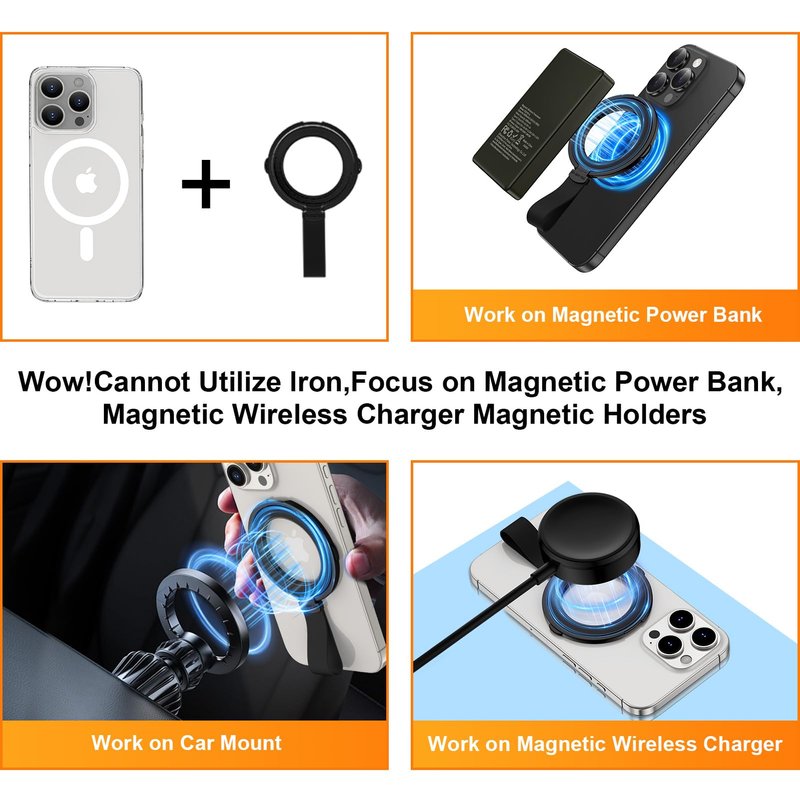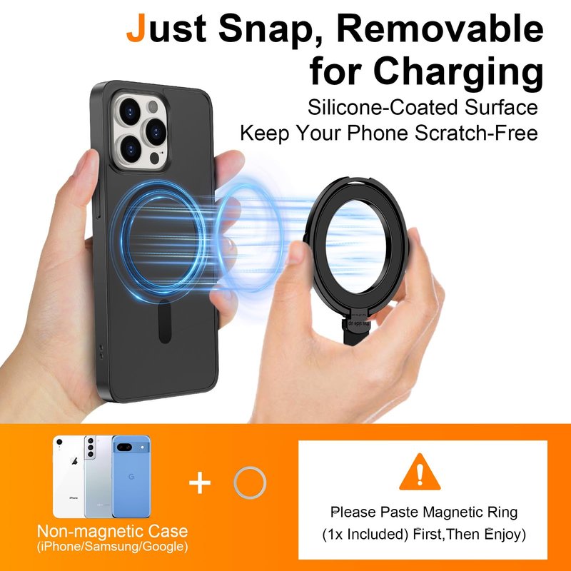 - 【iPhone & Android Phone Case Users Friendly】: The magnetic phone grip can directly snap onto iPhone iPhone 16 Pro Max,16 Plus,16 Pro 16, 15 14 13 12 series, or MagSafe magnetic cases. This ring holder also directly snaps onto MagSafe magnetic cases for Samsung Galaxy S24 S23 A15 A35 A55 series, Google Pixel and other smartphones. Note: If using Non-Magnetic Regular iphone cases, please use metal ring which included to stick to your case first, then enjoy the magsafe stand/ grip holder