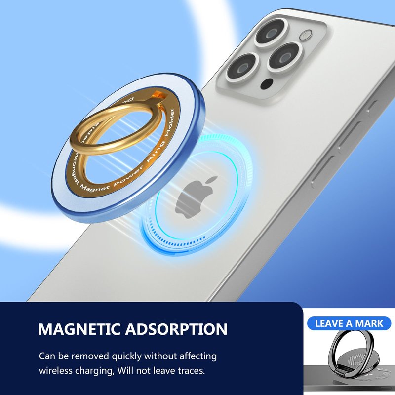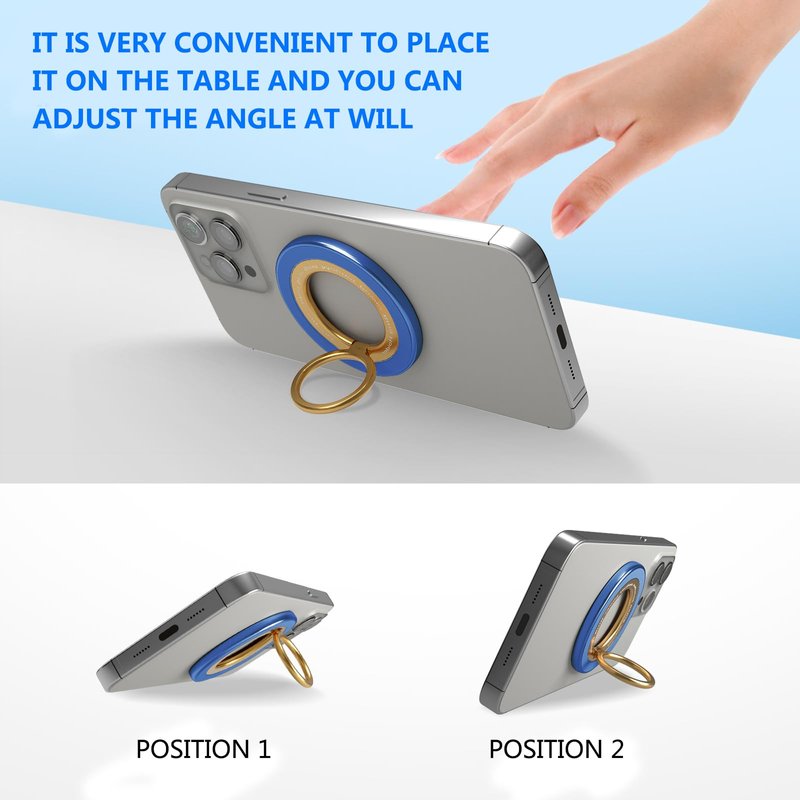 Magnetic Phone Ring Holder for MagSafe pop Socket,【Two-Sided Magnetic】 360° Rotation Magnetic Phone Grip for iPhone 16/15/14/13/12 Series/Samsung/Google,Pop Socket for iPhone(Blue with Gold)