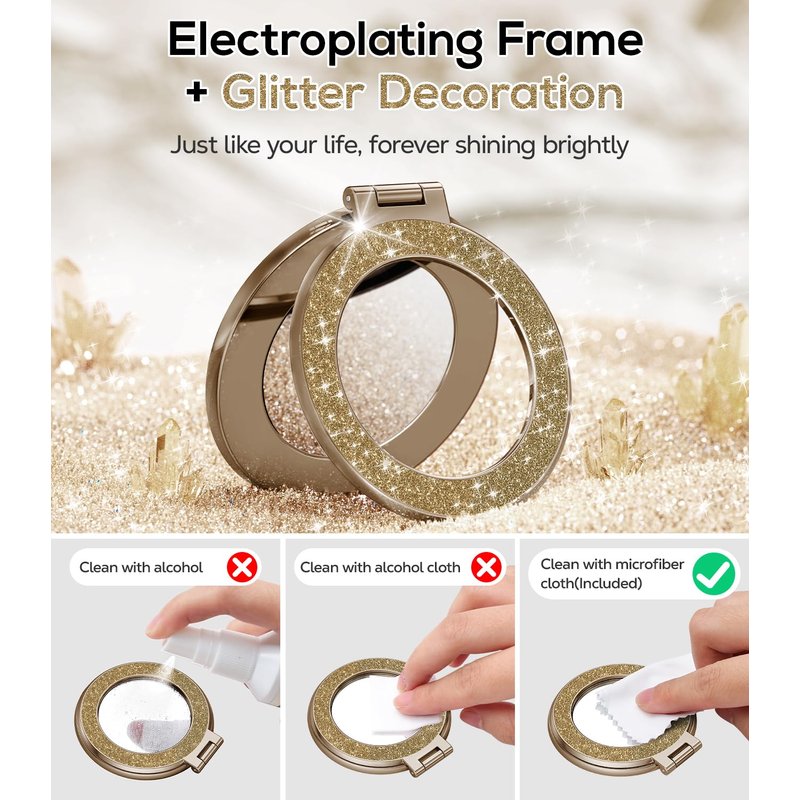Magnetic Phone Ring Holder with Mirror for Magsafe Case, [Electroplated & Glitter], Phone Grip Stand Ring Kickstand Designed for iPhone 16 Pro Max/15/14/13/12 Series for Girl Women