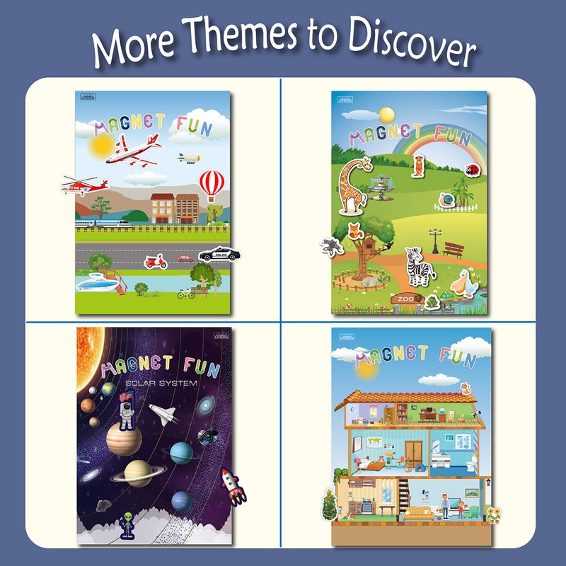 - Portable & Elegant: Opened, it provides 2 fun play scenes with Zoo, Tree house, Amusement park and multiple objects, with which kids could exercise their imaginations for hours. Closed, it’s a thin pamphlet so kids could easily carry them around on trip, the magnets will stay on the board safely.
